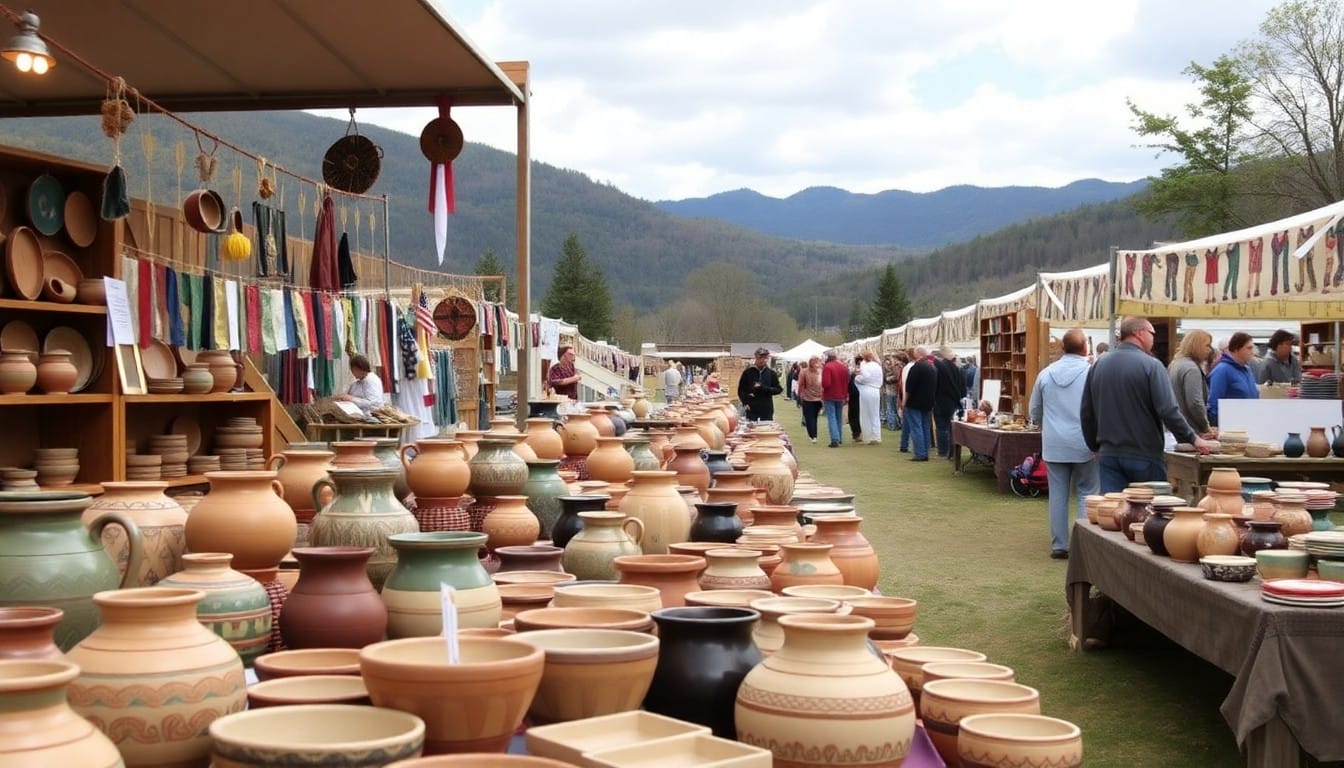 The pottery stall was at the end of a row, partially hidden behind a woman selling dried flower arrangements. An older man sat on a folding chair, watching the crowd with the patient disinterest of someone who's been to many craft fairs and knows they mostly amount to a day of sitting. His table held maybe thirty pieces—bowls and cups and small vases—each one distinct but clearly from the same hand. The glazes tended toward earth tones: warm browns and greens, the occasional splash of deep blue, colors that seemed to belong to the mountains around us.